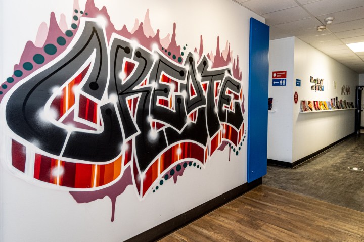 44 Gaukel project partner Accelerator Centre commissioned Andrew to create these murals to add splashes of inspiring shape & colour to the facility’s 2nd-floor reception area – plus a small dose of subversive vibe to the office spaces upstairs.